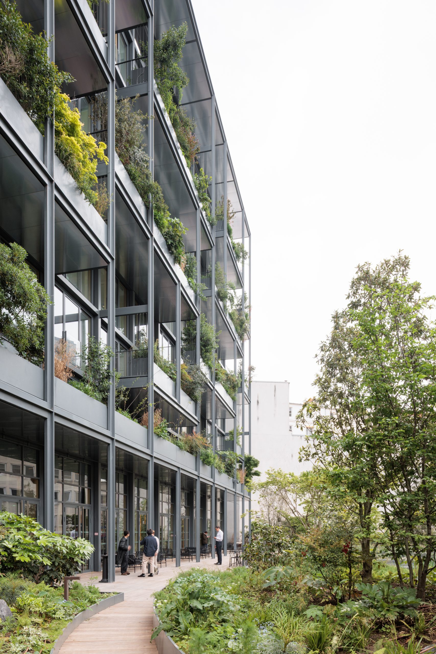 Sous-traitants : BET Structure : EUREKA ; gros œuvre – lasure : SOFAPER ; gros œuvre – flocage/ITE : CF SERVICES ; gros œuvre – coulage plancher/béton quartz : SLG ; étanchéité extérieure : ALUVAL ; étanchéité intérieure : EGPR ; verrière de toiture : ALUVAL ; menuiserie extérieure : ALUVAL ; bardages : ALUVAL ; plâtrerie : SGPI ; plafonds : SGPI ; menuiserie intérieure bois : NORMEN, SEDIB ; mur mobile : SBI DORMA ; métallerie et sas d’entrée : ALX2M ; métallerie et sas d’entrée (rideaux coupe-feu) : ACH ; faux plancher : GAMMA ; revêtements durs : EGPR ; revêtements souples : EGPR ; maçonnerie : TECHNOLOG, MAZDEM ; peinture parking : SAGA+ ; peinture : GYM BAT, 1001 COULEURS ; ascenseurs et monte-charge : KONE ; CVC : HERVÉ THERMIQUE ; plomberie : HERVÉ THERMIQUE ; courants forts : SNER ; courants faibles : SNER ; réseaux froids : JD EUROCONFORT ; faux plafonds filtrants : ALVENE