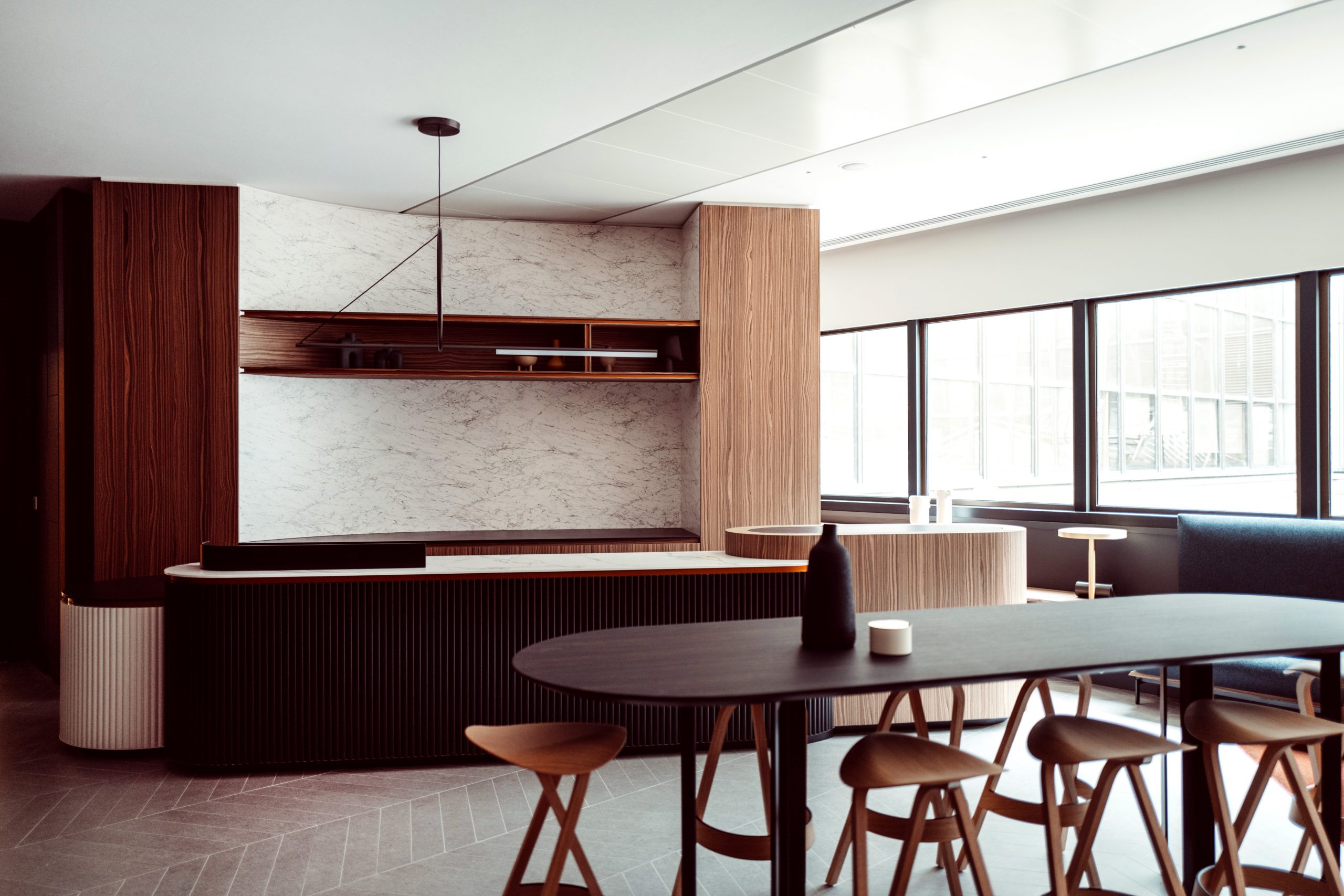 Oui, le mobilier et les luminaires. Par exemple, ici, les luminaires en albâtre ont été spécialement dessinés pour ce projet, tout comme la majorité des éléments de mobilier. D’ailleurs, ces luminaires en albâtre édités par l’Atelier Alain Ellouz ont été présentés à la Design Week de New York.