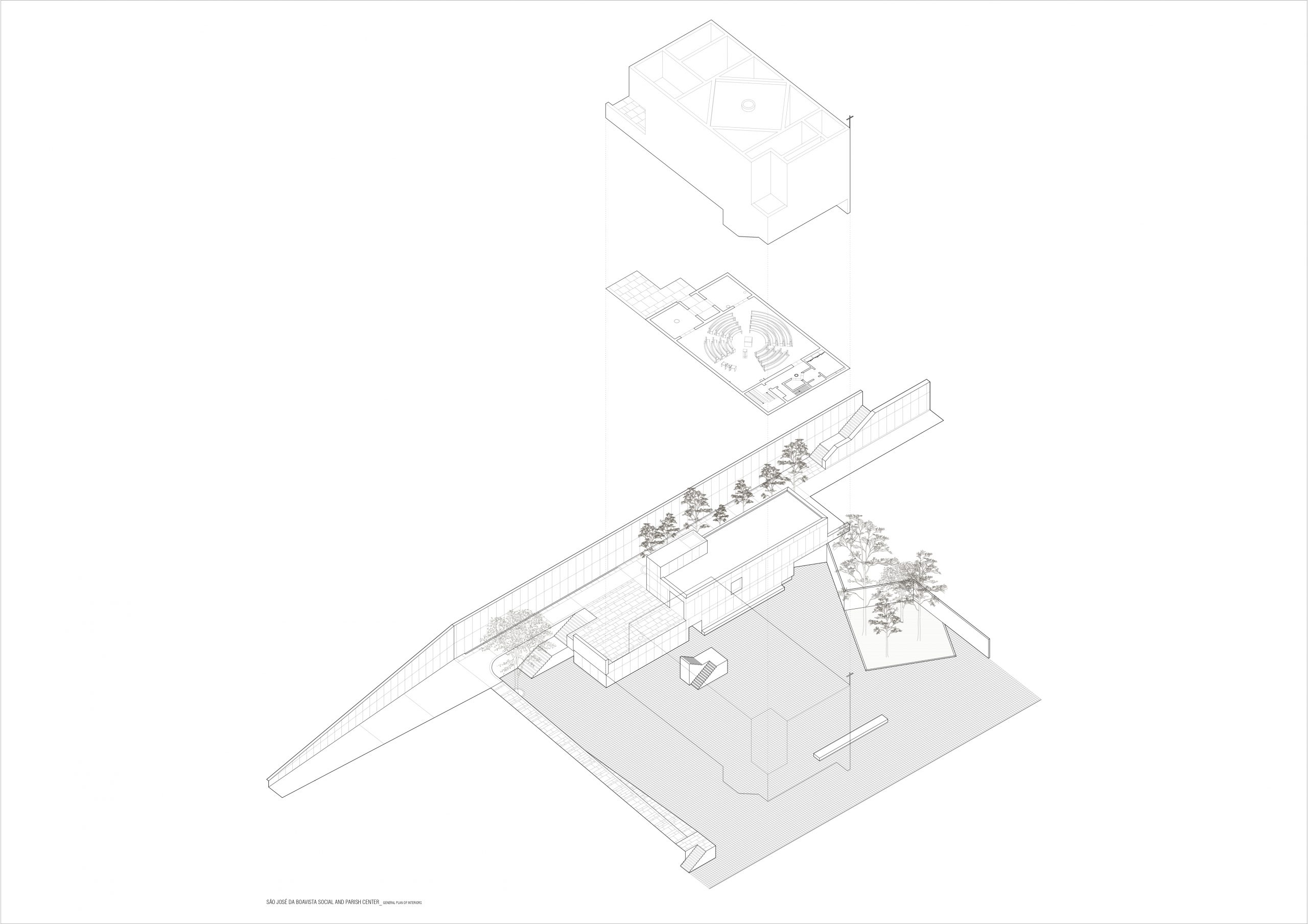 L’architecture portugaise actuelle est trop souvent et de manière simpliste désignée comme moderniste régionaliste. Ici, le dialogue et la cristallisation devaient se faire dans un site urbain banal de résilles monotones à l’architecture caricaturement moderne, les architectes ont alors opté pour une architecture résolument moderniste. À partir d’un principe simple, une couronne et un centre, ils ont enlevé et articulé de la « matière ». Toute la composition des espaces et des volumes repose sous la double conception soustractive et additive. Le tout pour générer des vides à la force prégnante qui, à l’égal du thème du « Mâ » japonais, se rendent présents et laissent place à des appropriations ouvertes. Ainsi, le dessous ouvert de l’église est à la fois prolongement et présence du lieu de culte et espace particulier de la place publique. De même, le clocher est ici un vide, un